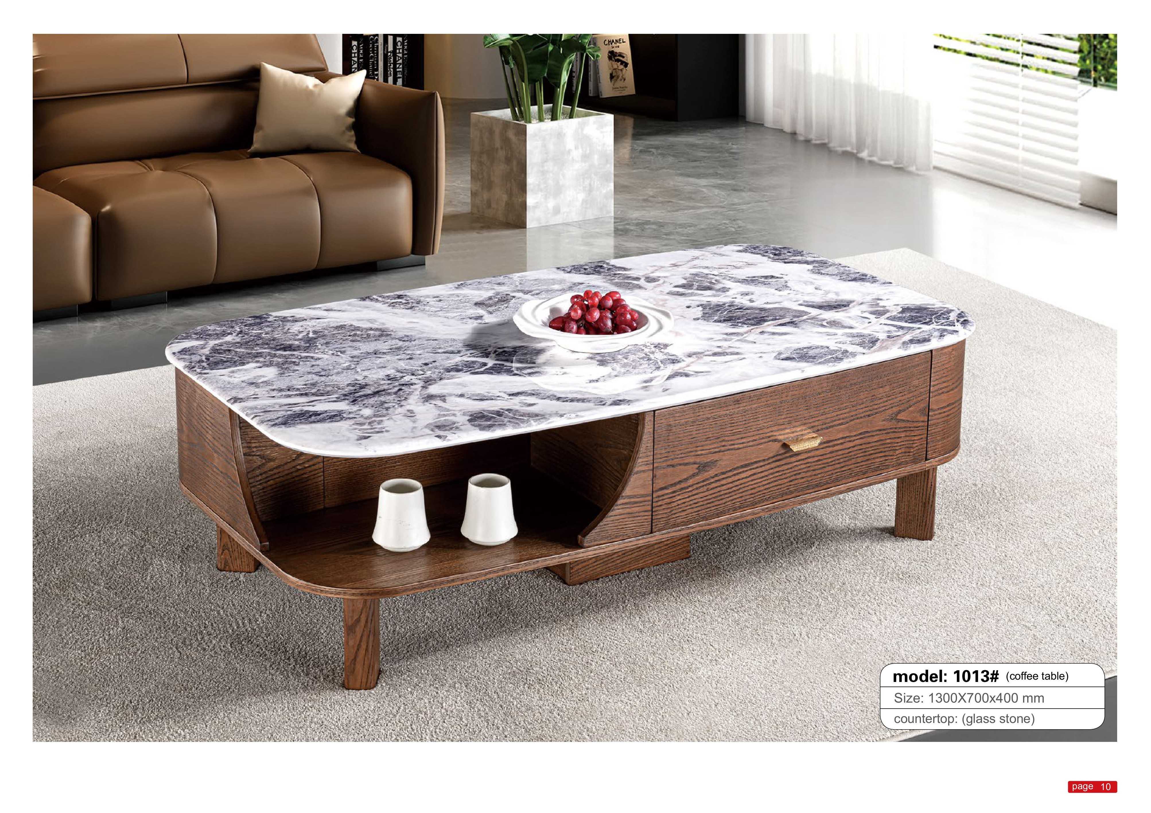 Bàn trà SB1013 mang phong cách hiện đại pha chút ấm áp với sự kết hợp hài hòa giữa mặt đá vân tự nhiên và thân gỗ tông trầm sang trọng. Thiết kế bo góc mềm mại giúp tổng thể sản phẩm trở nên tinh tế, an toàn khi sử dụng trong gia đình.