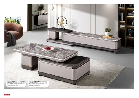 Bàn trà SB7819 gây ấn tượng mạnh với thiết kế hiện đại và sự phối hợp màu sắc vô cùng tinh tế. Sự kết hợp giữa mặt đá vân loang tự nhiên sang trọng, bề mặt gỗ màu tối tạo nên một tổng thể đẳng cấp, thanh lịch, phù hợp với mọi không gian phòng khách thượng lưu.