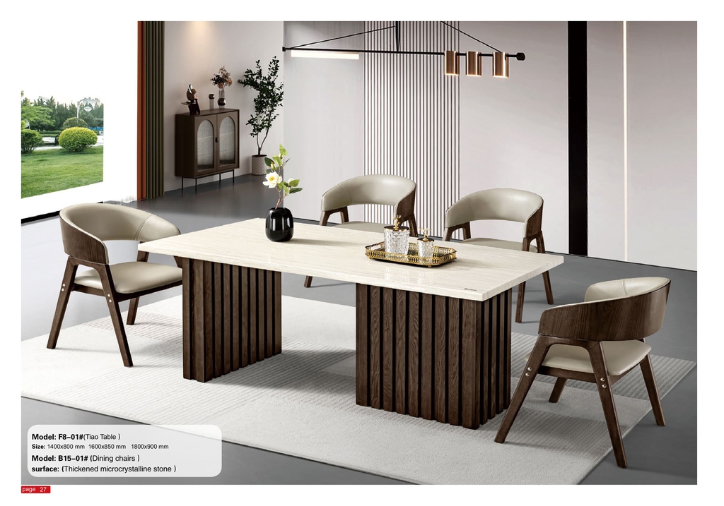 Bộ bàn ăn F8-01 mang phong cách hiện đại, nổi bật với mặt bàn rộng rãi, bề mặt sáng đẹp, dễ vệ sinh trong quá trình sử dụng. Thiết kế chắc chắn, đảm bảo độ bền và tính ổn định lâu dài.