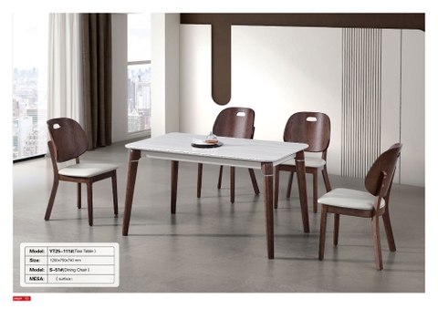 Bộ bàn ăn YT25-11 sở hữu thiết kế tối giản hiện đại, hướng đến sự thanh lịch và tinh tế cho không gian phòng bếp. Mặt bàn màu sáng vân đá nhẹ nhàng, giúp tổng thể trở nên thoáng và dễ kết hợp với nhiều phong cách nội thất khác nhau.