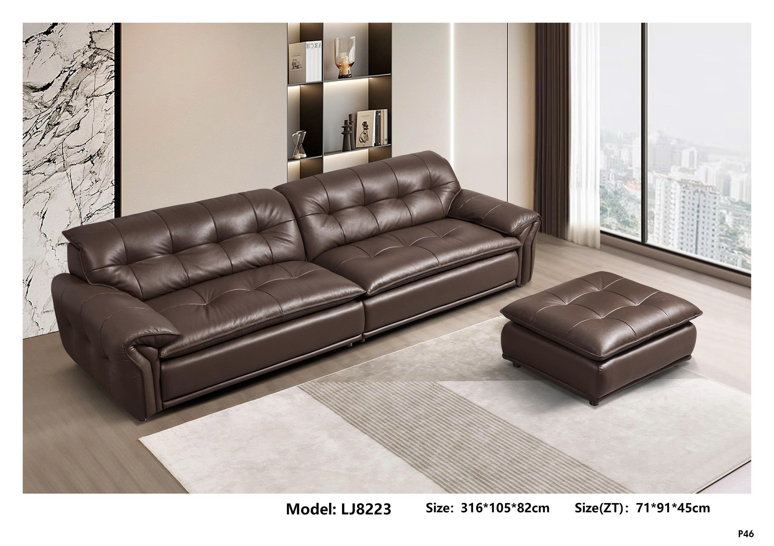 Sofa da thật LJ8211: nét đẹp thanh lịch – tinh tế không gian