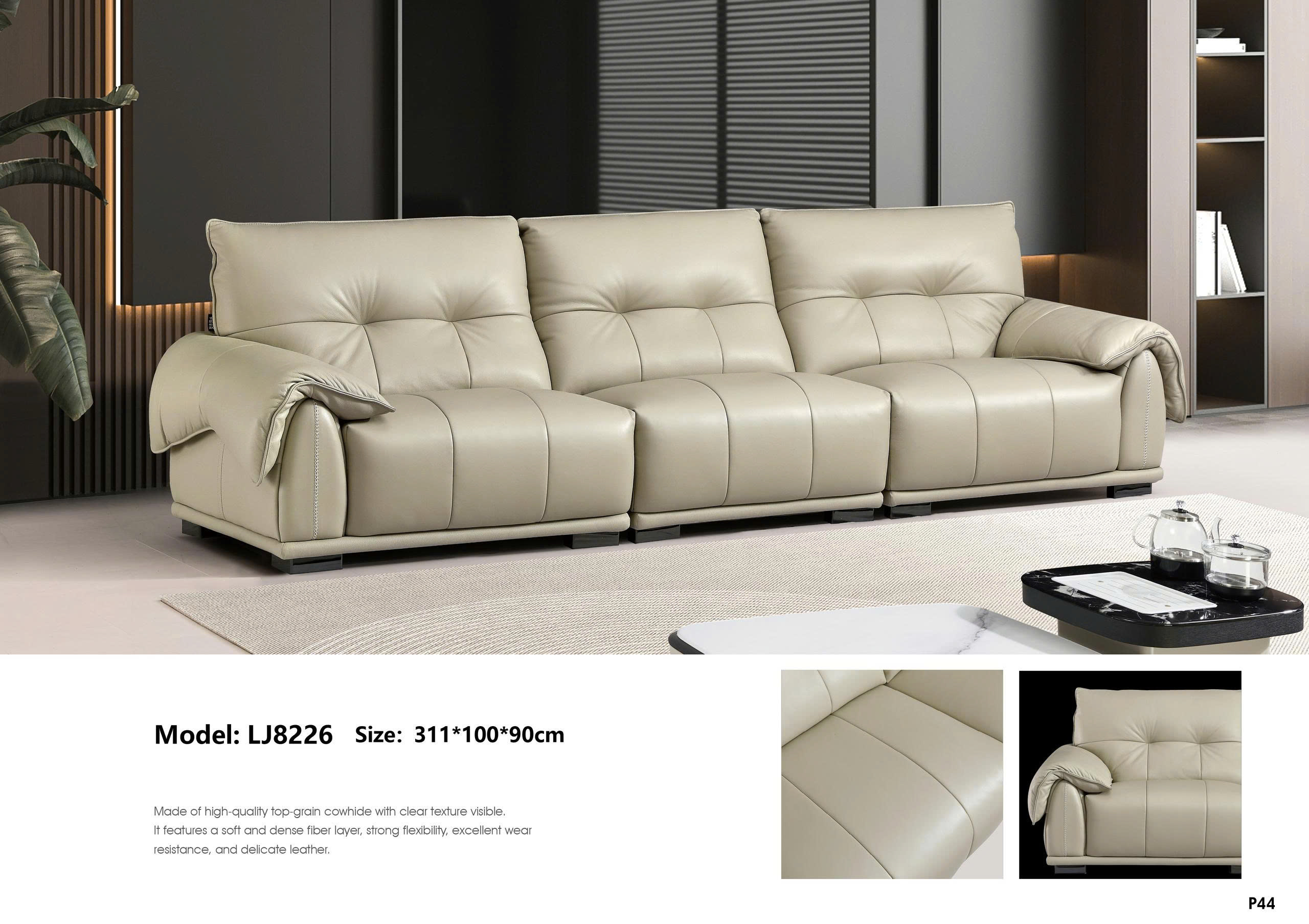 Sofa da thật LJ8226: nét thanh lịch – trọn vẹn êm ái