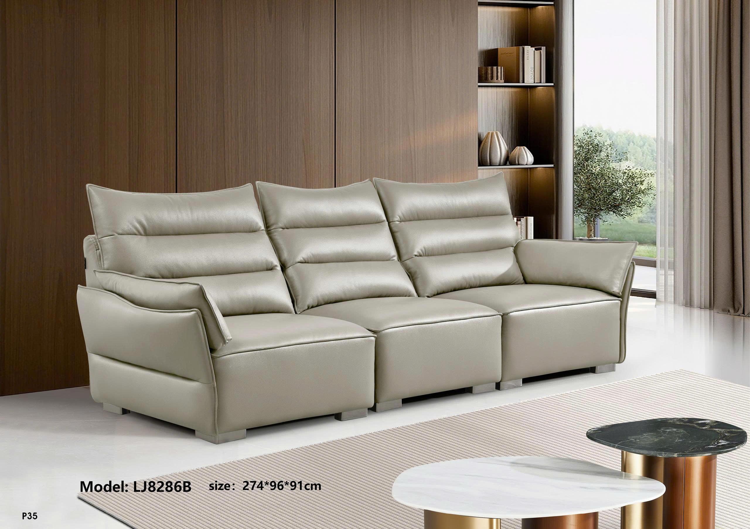 Sofa da thật LJ8286B: thiết kế thanh thoát – tựa lưng bồng bềnh