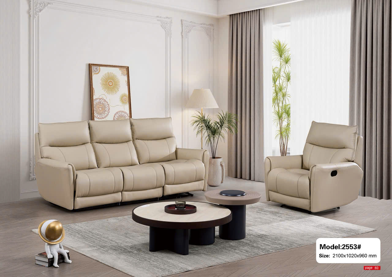 Sofa nhập khẩu SA2553 là mẫu sofa cao cấp tích hợp chức năng chỉnh điện thông minh, mang đến trải nghiệm thư giãn tối đa cho người sử dụng. Bộ sofa gồm ghế văng lớn và ghế đơn chỉnh điện, phù hợp với những không gian phòng khách hiện đại, đề cao sự tiện nghi và thoải mái.