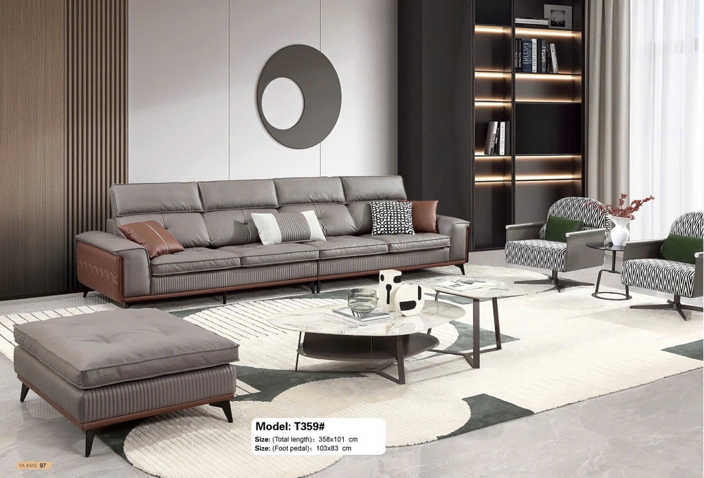 Sofa nhập khẩu SAT359 là mẫu sofa cao cấp mang phong cách hiện đại, nổi bật với thiết kế tinh tế và gam màu trung tính sang trọng. Sự kết hợp hài hòa giữa màu xám chủ đạo và các chi tiết phối màu nâu giúp bộ sofa tạo điểm nhấn nổi bật nhưng vẫn giữ được sự trang nhã, dễ dàng phù hợp với nhiều không gian nội thất phòng khách hiện đại.