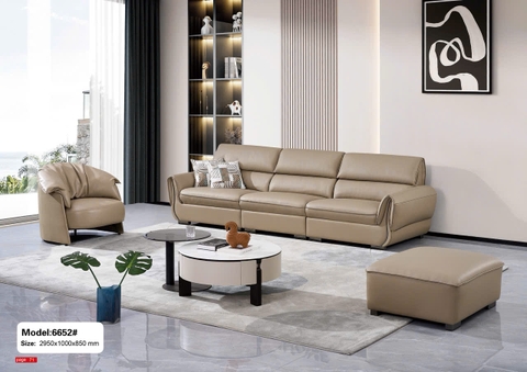 Bộ sofa da nhập khẩu SA6652 sở hữu thiết kế hiện đại, form ghế lớn và đường nét bo mềm tạo cảm giác sang trọng, êm ái cho không gian phòng khách.